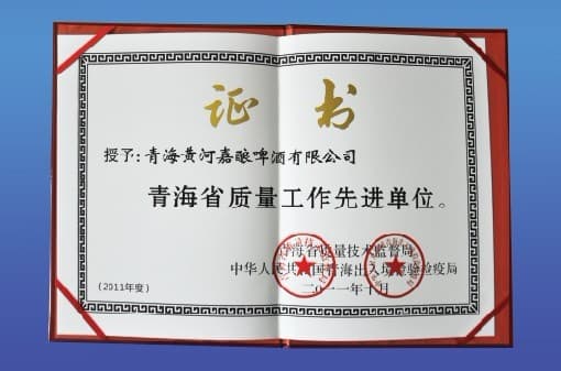 青海黃河嘉釀啤酒有限公司被評為“青海省質(zhì)量工作先進單位”。